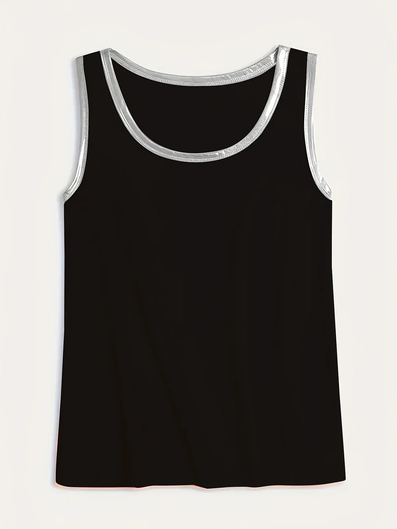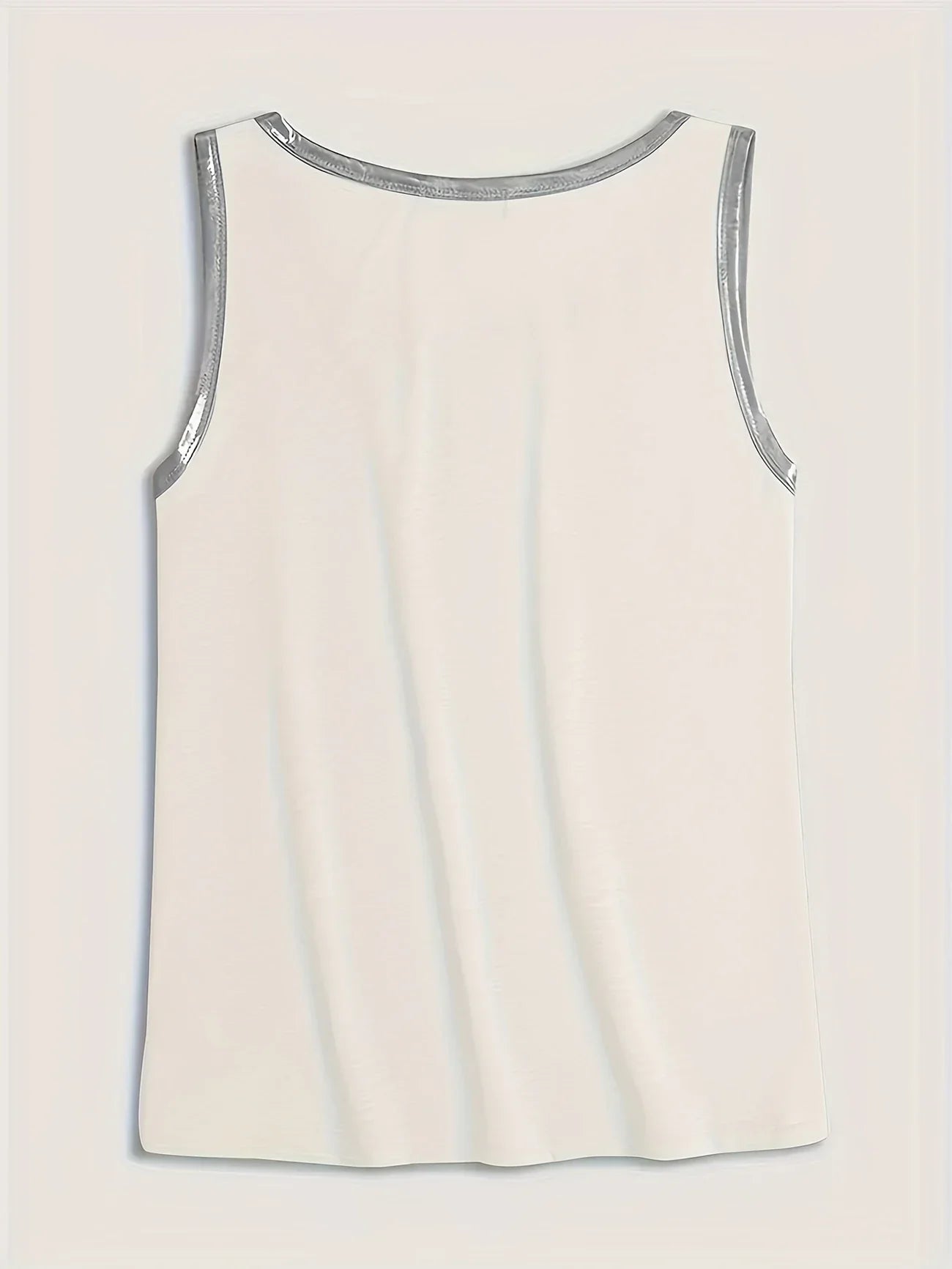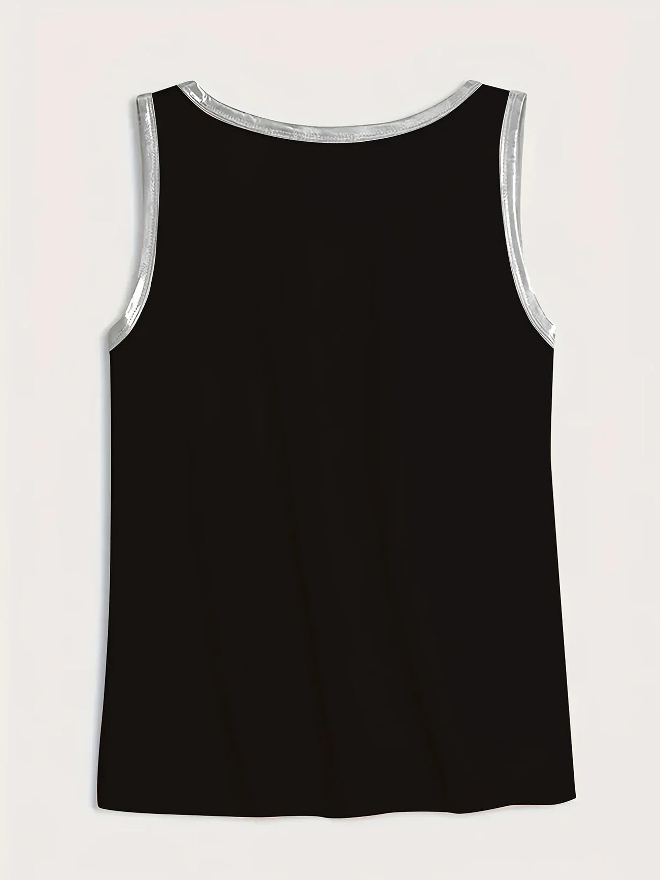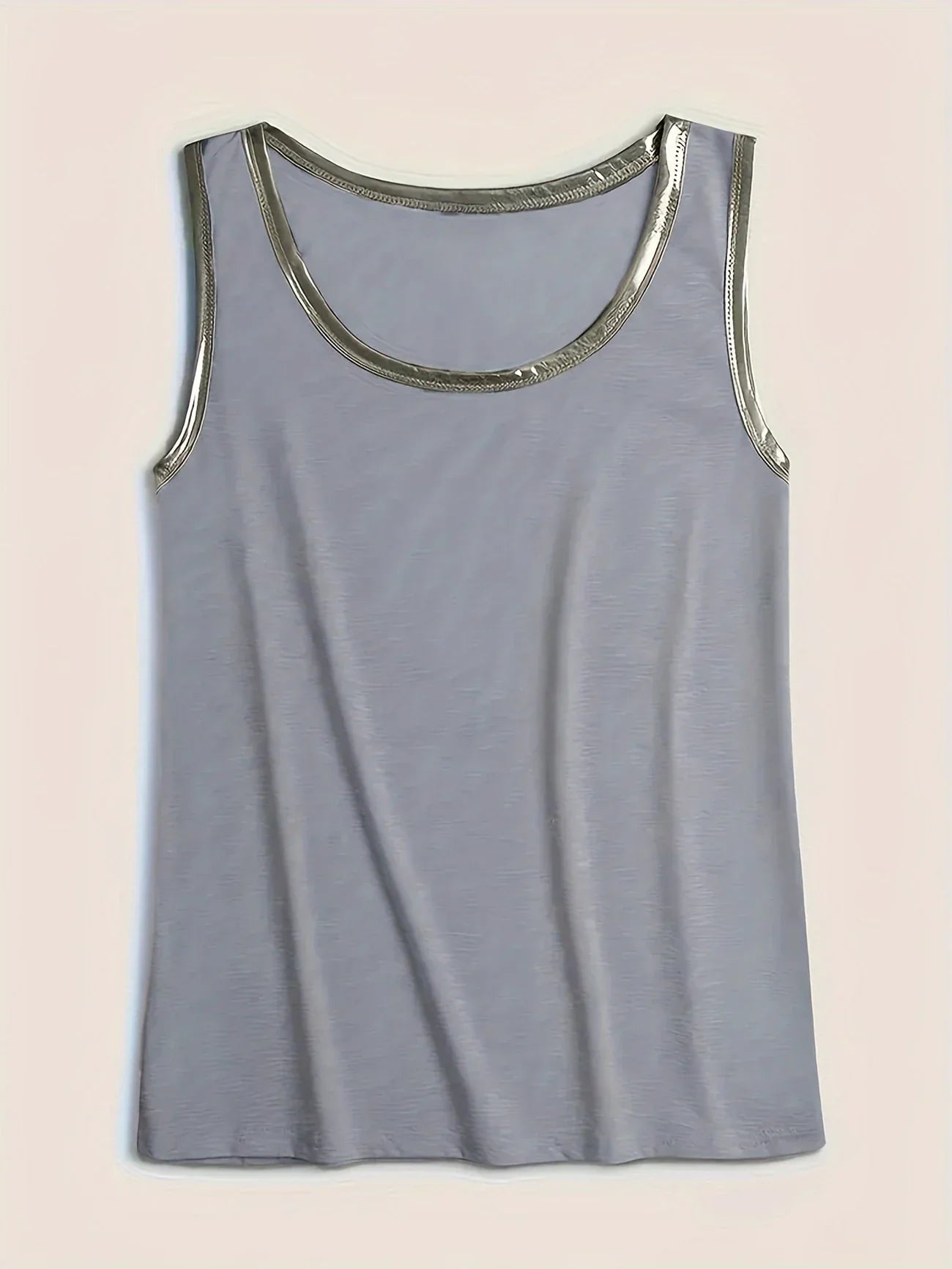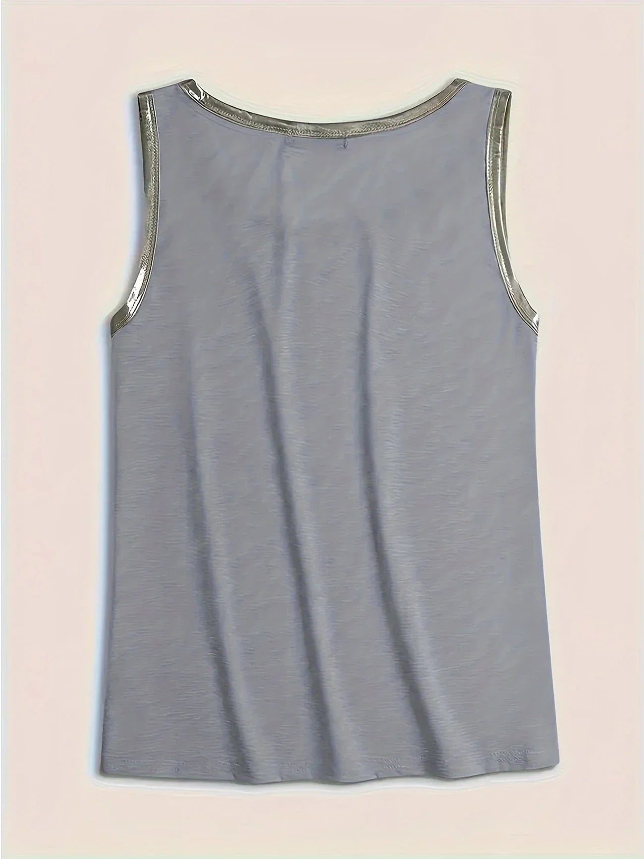 ✨ עיצוב מתכתי מרשים: לגופיה קישוט נוצץ באזור המחשוף והזרועות, המעניק מראה מיוחד ומחמיא לכל הופעה בקיץ.