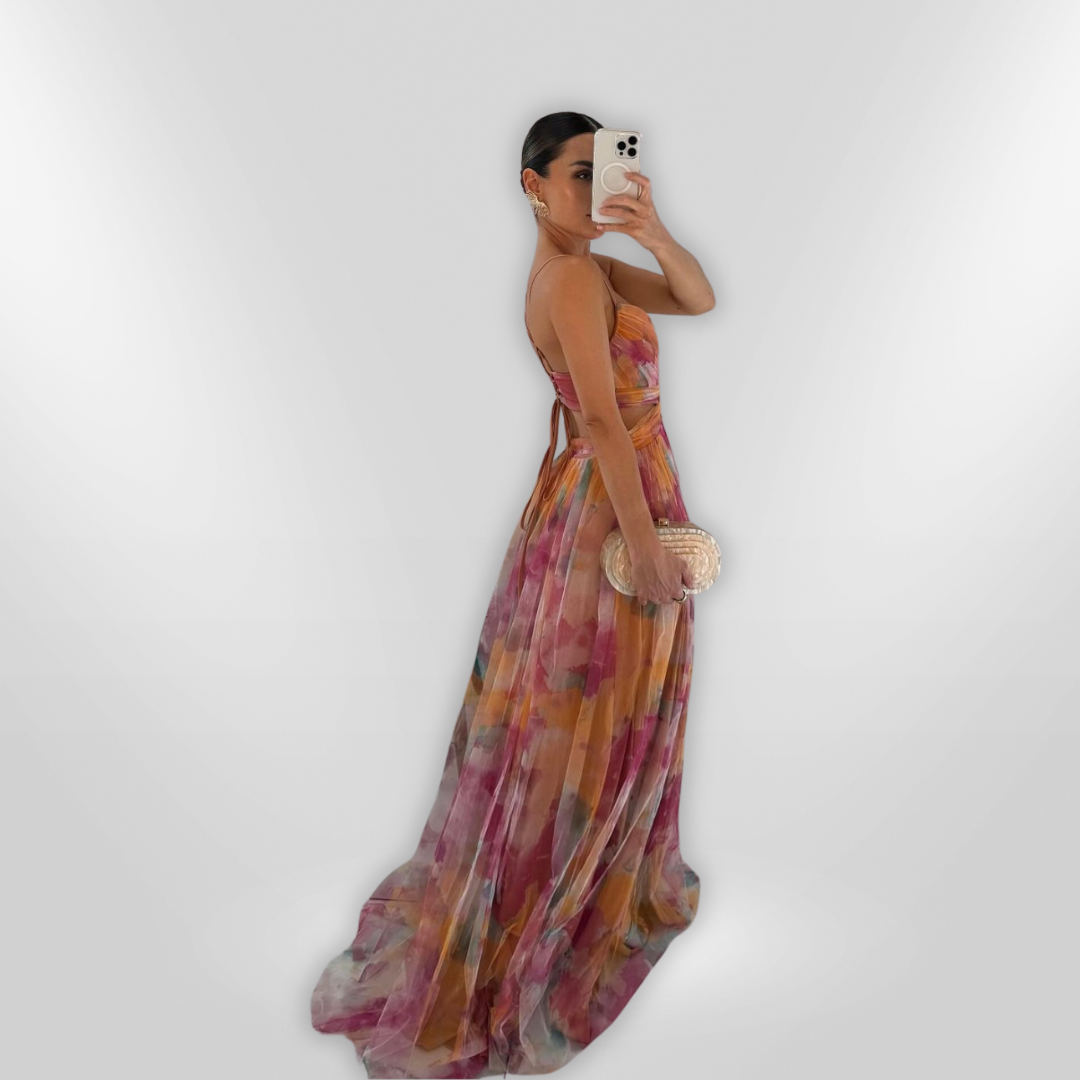 כנסי לעולם של קסם ואלגנטיות עם שמלת Vaëlia – שילוב מושלם בין הדפסים אומנותיים לאווירת קיץ מעודנת. שמלת המקסי הזו גולשת ברכות על הגוף ומעניקה מראה קלאסי ומלא שיק – בלי מאמץ. מושלמת לאירועי גן, חתונות או ערב מיוחד – ותגרום לך לזהור במראה על-זמני ומעודן. ✨🌸