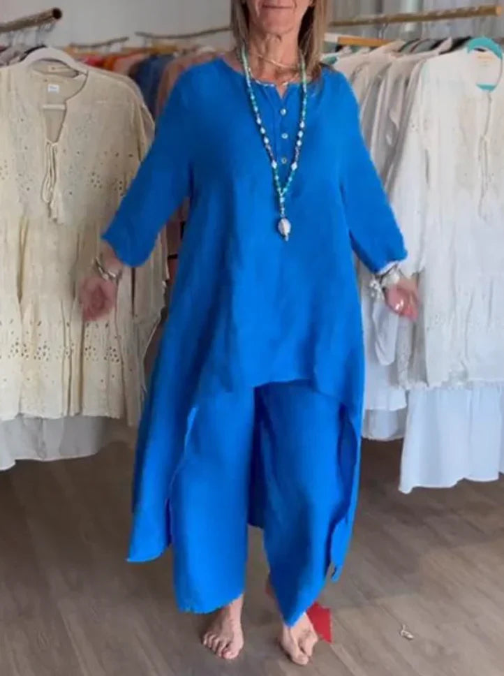 סט מכנסיים רחבים עם חצאית סרוגה ללא שרוולים